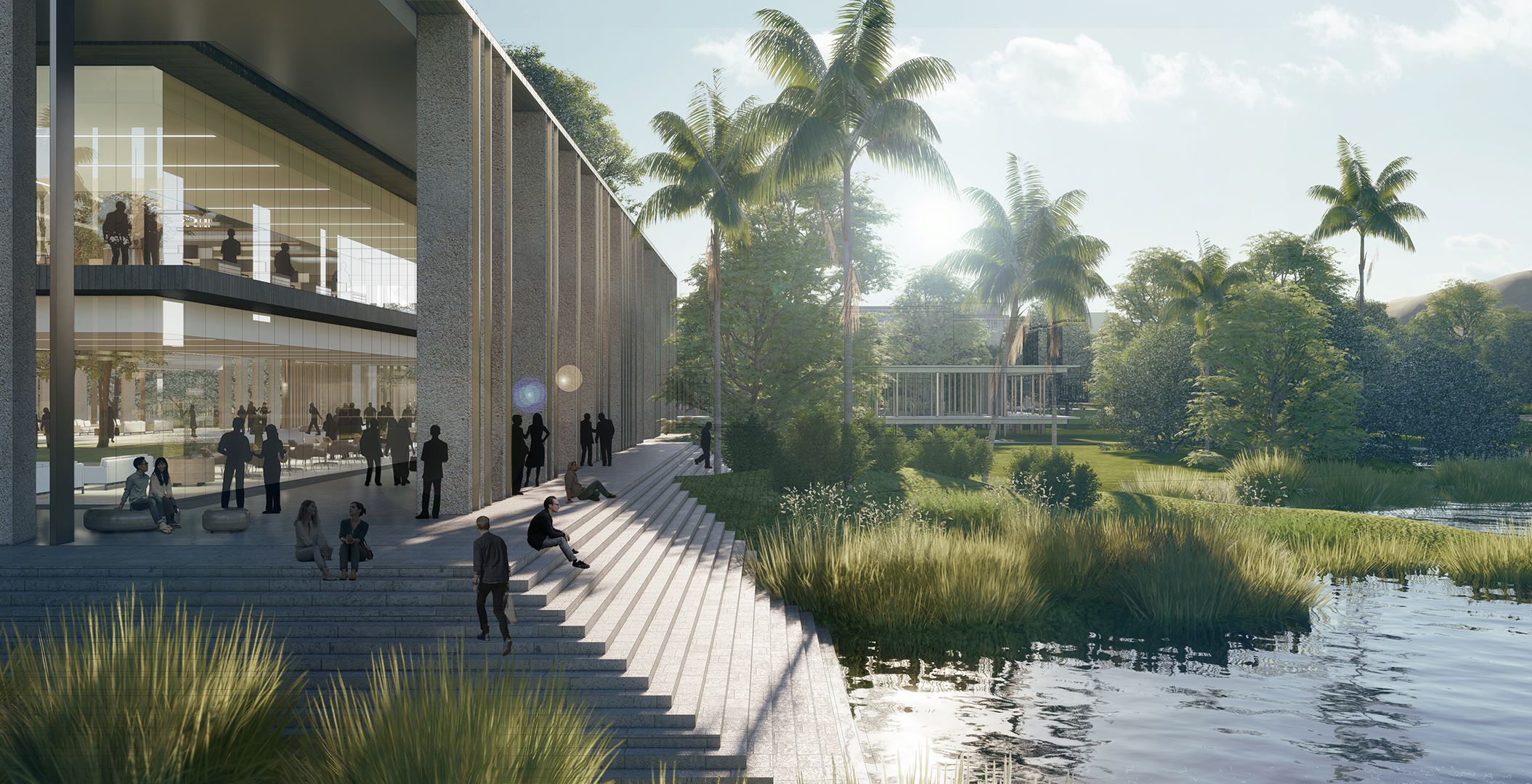 Quy hoạch với khu vực học thuật (academic zone) nằm trong hình tròn lớn bao quanh bởi hệ thống cay xanh dày đặc làm đệm với đô thị và đường cao tốc xung quanh, đồng thời lõi giữa của khu vực này là một công viên ngập nước nhân tạo rộng lớn, tất cả tạo nên một khu trường đại học đắm chìm vào cảnh quan thiên nhiên đậm chất Việt Nam.
